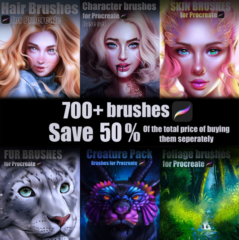 Get a total 16 of my current brush packs for Procreate at a heavily discounted price! Including all of the most popular ones!