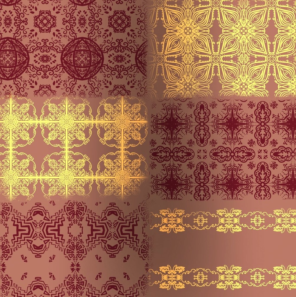 Tips for use: use blend modes like multiply, overlay or color dodge in a seperate layer. Then use liquify to drag the pattern so it curves nicely around the shapes you’re applying the pattern to. Voilà!
