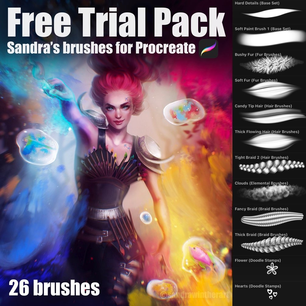 This is a brushpack for Procreate containing 26 cool brushes from different brushpacks of mine, they’re yours for free! You can use them for personal and commercial work, but you’re not allowed to sell or share the brushes themselves. Enjoy!